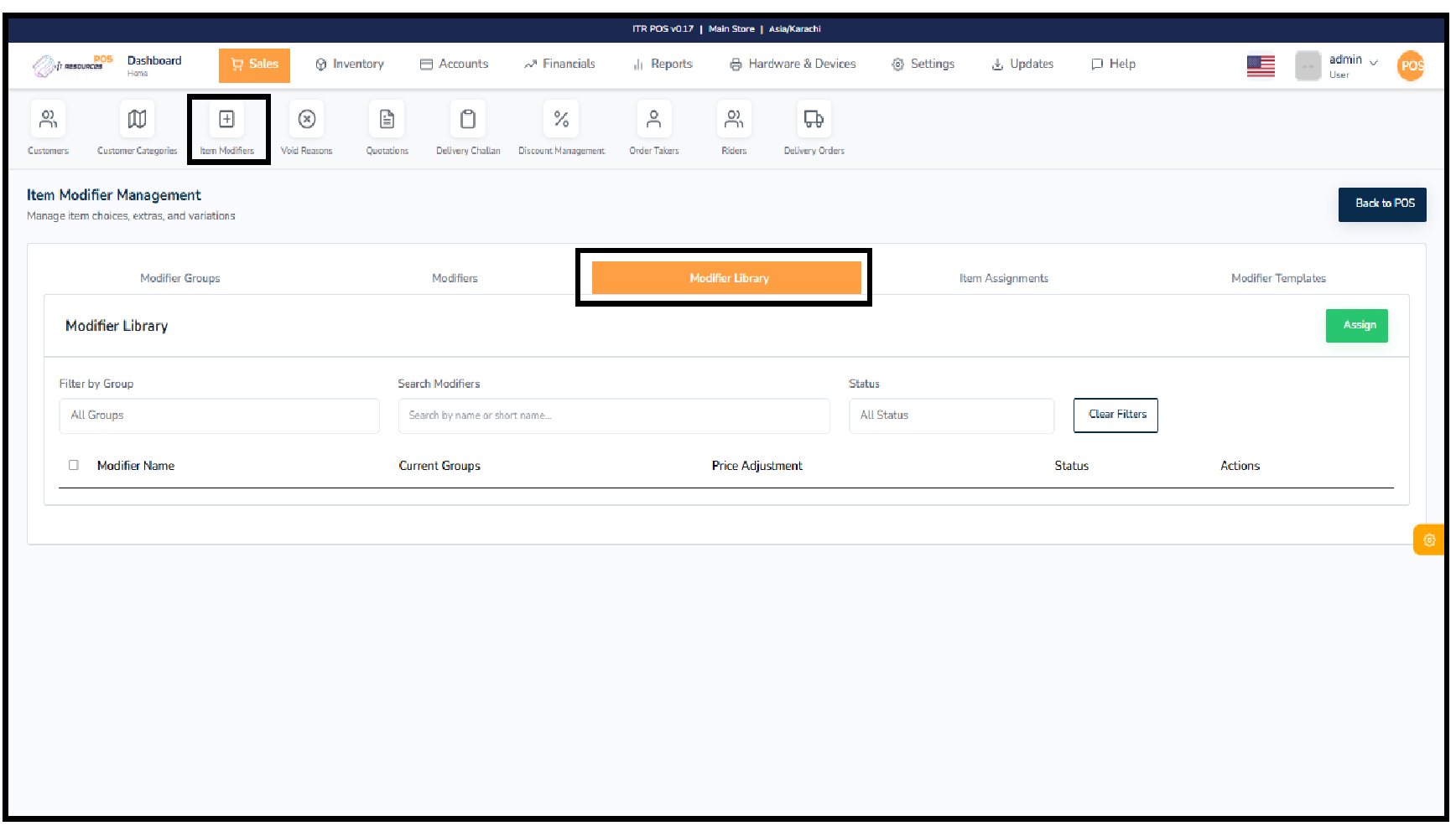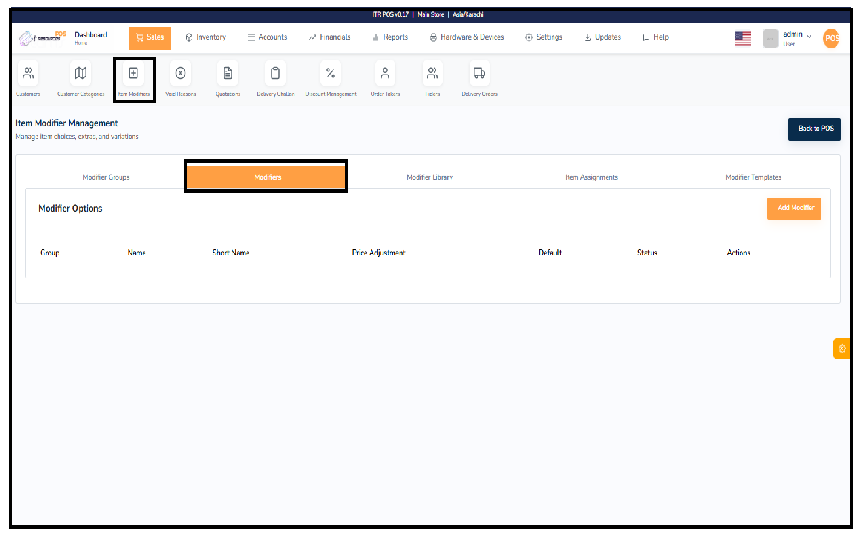 A central list where all product or service modifiers are created and stored.